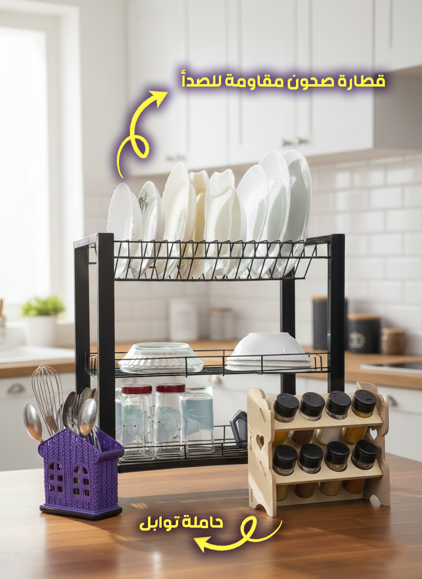 باك تنظيم المطبخ مجفف أواني 3 طوابق+هدية حاملة توابل100% مقاوم للماء